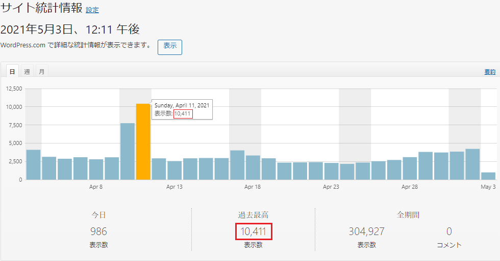記事を追加していないのでUPとはいきませんでしたが、4月10日~11日には4か月連続の爆発💣●~*💣が発生し自身初となる10,000PV/日越えも経験することができ、しかも1つの記事に7,800PV/日ものアクセスが集まりビックリ驚きました😲
